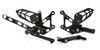 The position of the footrests as well as the brake and gear levers can be adjusted according to personal needs. The positioning of the footrests is done by a combination of a push and rotatable setting at only one point, so this is really fast and easy selectable (five positions through pushing and four positions by rotating). The conversion to GP shifting style works through the simple swapping of the shift rod position. Brake and shift levers come with double ball bearings for perfect free of play function of the levers. Aluminum heel guards on both sides complete the scope of delivery.
