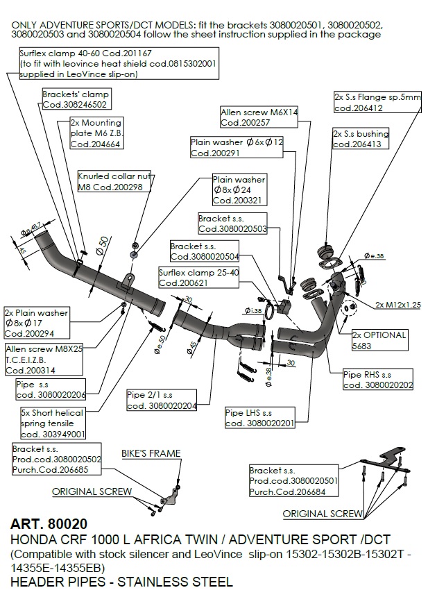 Note: - not homologated - camptible with OEM and Leovince silencers, OEM panniers and OEM centerstand
