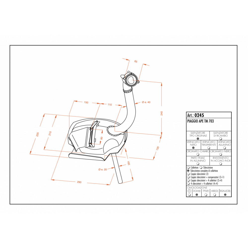 Note: SITO PIAGGIO APE TM 703 - complete with all fittings for the model specified