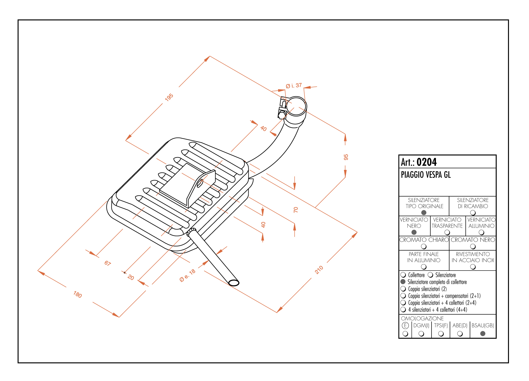 Note: SITO PIAGGIO VESPA GL - completo di raccordo e attacchi per il modello indicato