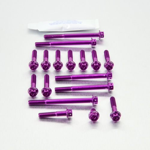 Una nuova linea di pregiatissime viti in ergal anodizzato è stata introdotta da Pro-Bolt per le moto più popolari. Fantastici dettagli uniti a caratteristiche di grande funzionalità come la foratura della testa esagonale per il fissaggio con filo di sicurezza.