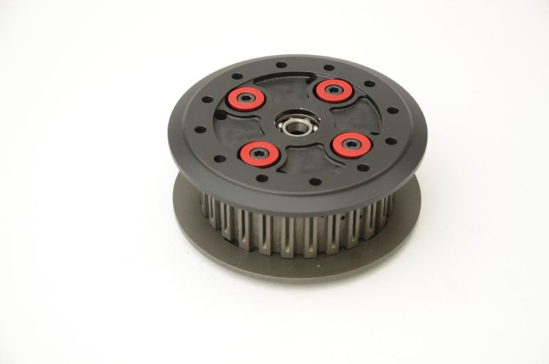 La frizione antisaltellamento di serie si comporta bene nell'uso stradale, ma nell'uso pista-agonistico è necessario un gruppo specifico, per compensare con una reattività maggiore gli effetti delle staccate estreme, scalate veloci di marcia, maggiore velocità di percorrenza della curva, ed eventuali modifiche motore, come la maggiore compressione. Sono quindi necessari una più efficace azione antisaltellamento, risposta più rapida e re-innesto meno brusco. La frizione TSS ha rampe meno inclinate ed un funzionamento uniforme. Grazie alla possibilità di scegliere il numero di molle secondarie o il disegno dei bicchierini di ritenzione molla il pilota può regolare in dettaglio il funzionamento del gruppo per meglio assecondare il proprio stile di guida e le condizioni della pista. Inoltre il vantaggio di peso è notevole, con risparmio di energia rotativa e effetto giroscopico, con l'effetto di una migliore risposta del motore. Il gruppo è realizzato in Ergal 7075.